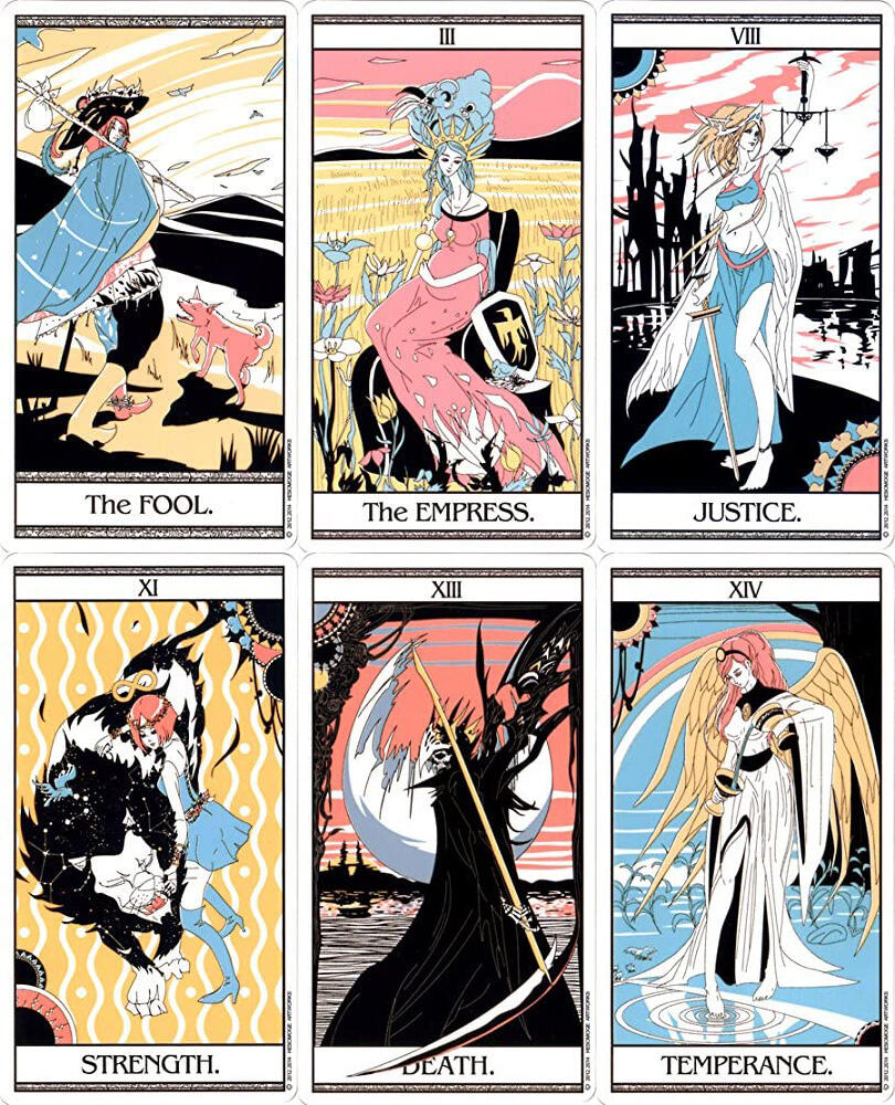 Illustrations from The Blue Birds Tarot, Tadahiko Kawaguchi (Hesomage Artworks) in Japan. Source →